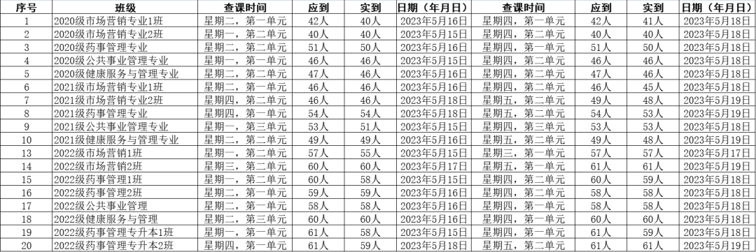 2020级药事管理专业出勤率98.03%;