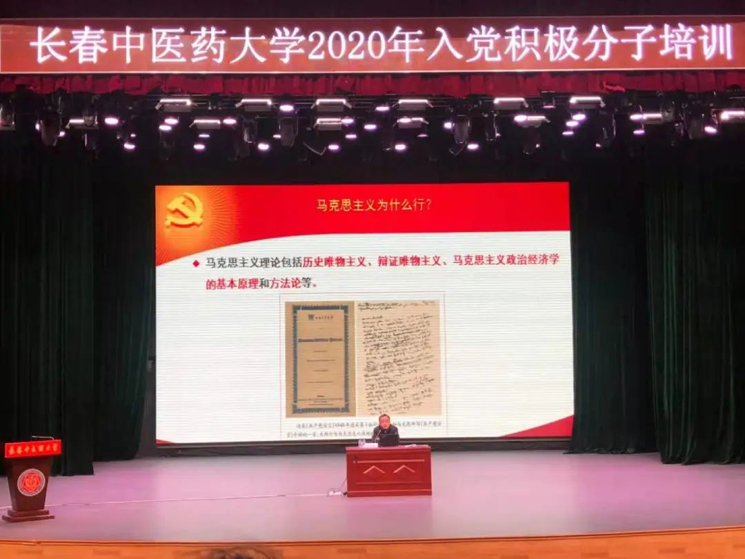 2020年12月4日,学校党委组织部部长王延博教授为全校2020年入党积极分子培训班学员作题为《追寻历史,坚定信念, 做新时代中国特色社会主义事业需要的接班人》的专题党课。