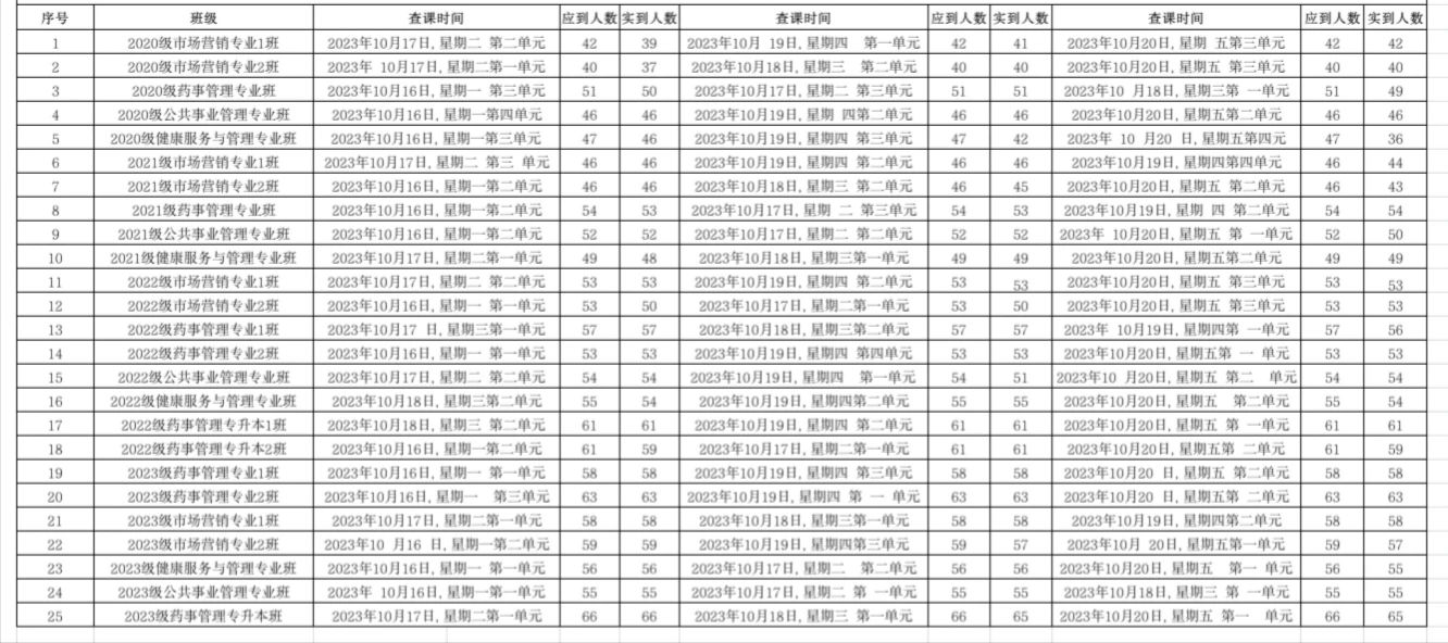 为全面推进本科教育水平评估工作,pp电子游戏平台官网党委积极组织学生党员开展查课工作,于10月22日,对第八周的查课情况做出总结。本周查课以严谨认真的态度对迟到、旷课、带早餐的学生进行了督促和教育。学生党员进入每间教室内检查学生出勤情况。经过一周的督查,学院共查25个班级75节课,覆盖学院全体20级、21级、22级、23级、22级专升本以及23级专升本共1335名学生。现查课通报如下: