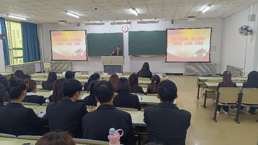 2023年11月1日,pp电子游戏平台官网党校第九期学生入党积极分子培训班在行知楼2204教室举行开班第一讲,邀请到pp电子游戏平台官网党委书记王中喜做题为《端正入党动机,树立正确的世界观、人生观、价值观》的专题党课。