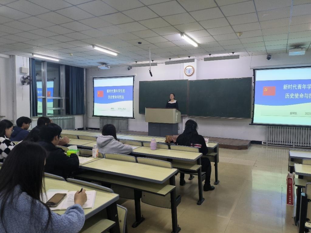 2023年11月3日,pp电子游戏平台官网党校第九期学生入党积极分子培训班在行知楼2404教室开展第四讲,邀请到pp电子游戏平台官网党委副书记兼副院长郝梓旭做题为《新时代青年学生的历史使命与担当》的专题党课。