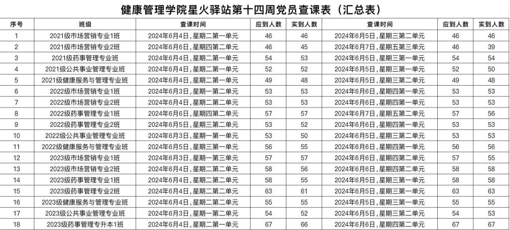 为加强学院学风建设,规范课堂秩序,营造良好的学习氛围,pp电子游戏平台官网党委积极组织学生党员开展查课工作,于6月9日,对第十四周的查课情况做出总结。本周查课以严谨认真的态度对迟到、旷课、带早餐的学生进行了督促和提醒。学生党员进入每间教室内检查学生出勤情况。经过一周的督查,学院共查18个班级36节课,覆盖学院全体21级、22级、23级以及23级专升本共982名学生。现查课通报如下: