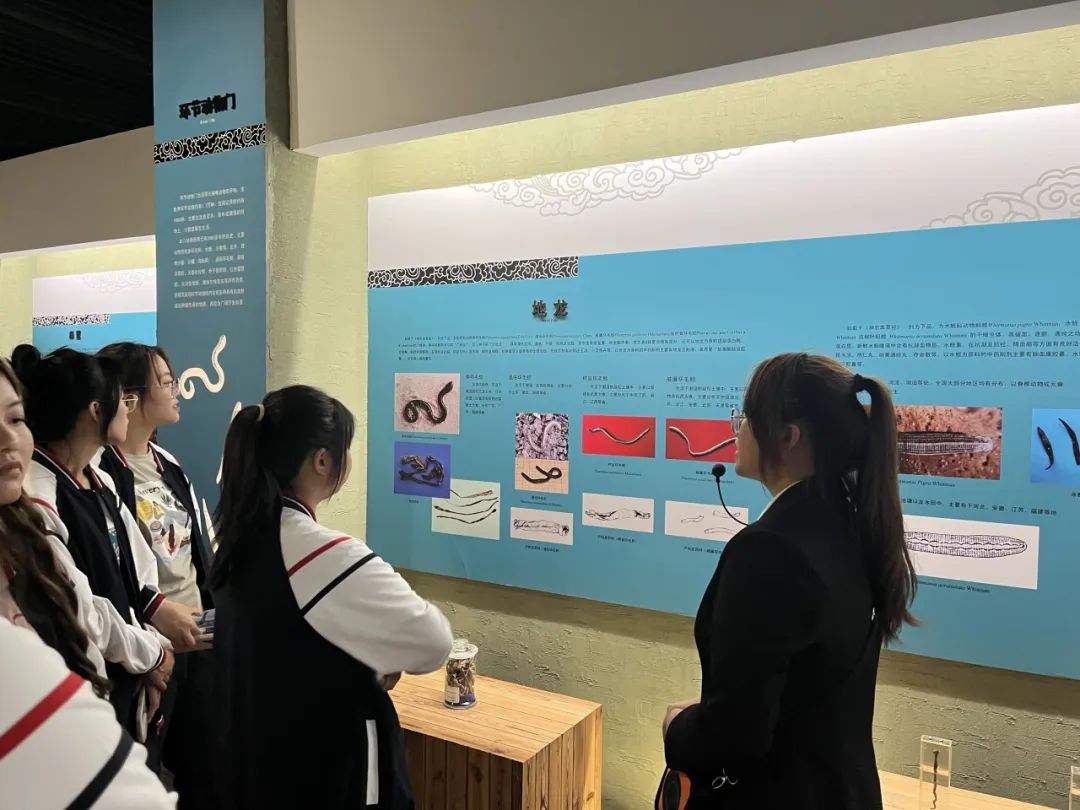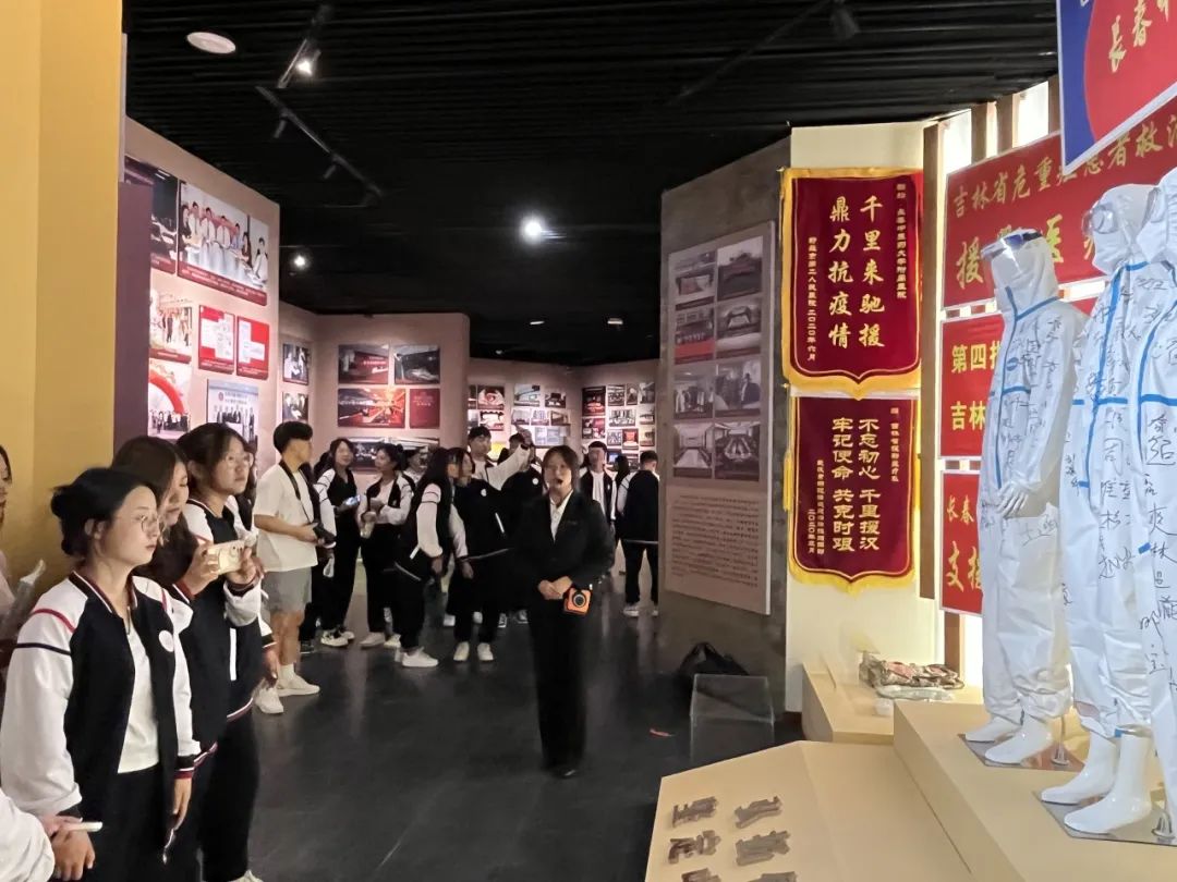 同学们跟随讲解员的步伐首先进入的是博物馆大厅,馆名刻在富有吉林特色的松花石上,并且刻有东北三宝——人参鹿茸林蛙,充分体现出地域特色以及我校浓烈的医学氛围。随后,同学们来到校史馆,讲解员以时间轴的形式介绍我校自建校以来经历。其中新冠疫情成果展区展示了我校的医者仁心以及使命担当。最后,此次参观以介绍我国医学发展的历程结束。
