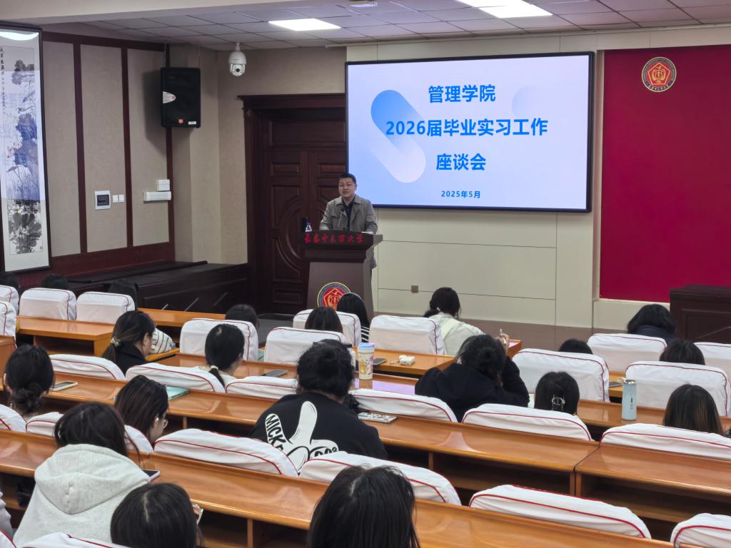 为帮助即将步入实习阶段的同学们明晰实习安排,深入理解实习的实践意义,确保同学们能顺利开启实习之旅,5月8日,管理学院于莲心报告厅举办了2026届毕业实习工作座谈会,管理学院院长越皓、副院长赫玉芳、教学秘书王赫、2026届学生辅导员孔德玲参加此次座谈会。