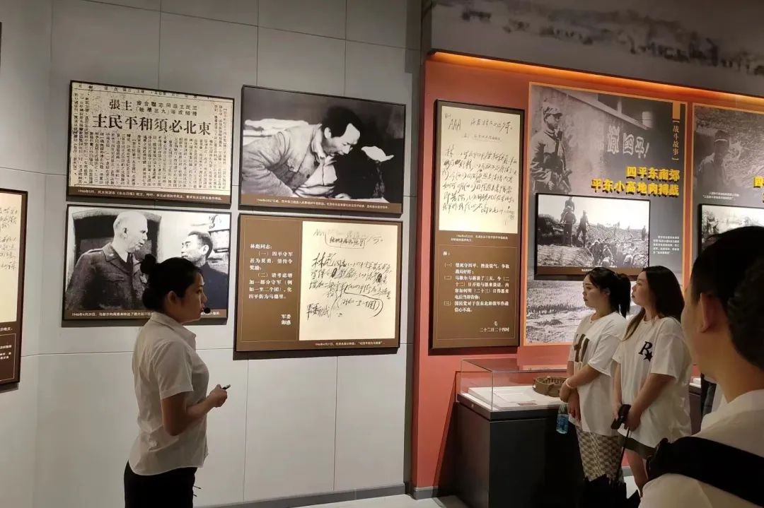 7月25日下午,为缅怀革命先烈,理解党性教育,继承先烈遗志,弘扬革命精神,团队来到四平战役纪念馆,通过场外和场内的授课使学生了解解放战争中“四战四平”战役的背景、经过与历史地位,促进学生深刻感受战争的残酷和英雄人物的辉煌。要学习革命先烈的战争伟力、胜利之本,更加珍惜和平时代安宁的生活的来之不易。