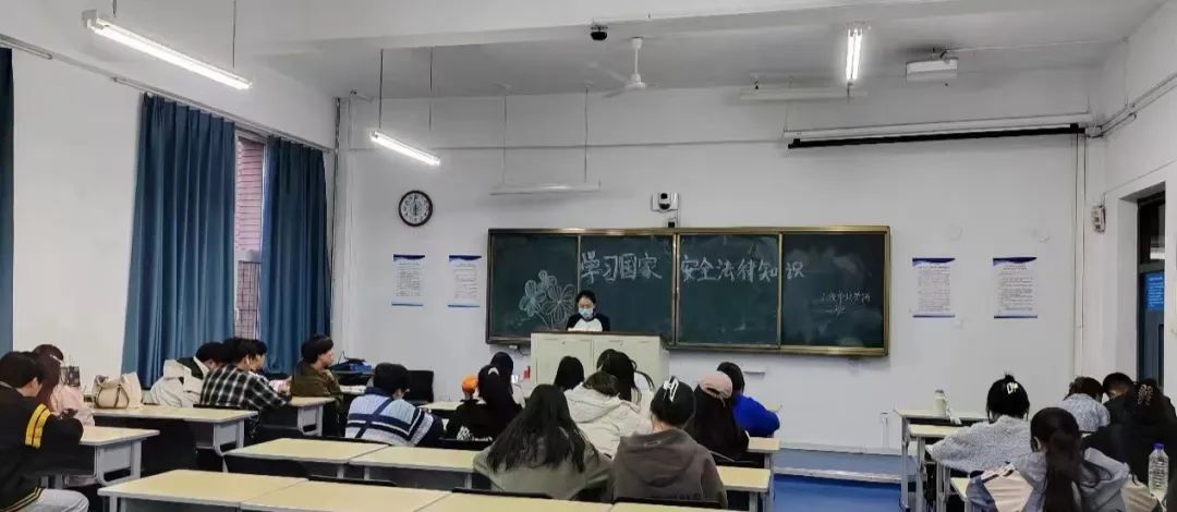 活动期间,各班班长组织班级同学共同学习了《中华人民共和国国家安全法》、《中华人民共和国生物安全法》、《中华人民共和国数据安全法》、《中华人民共和国网络安全法》等国家相关法律法规,了解反分裂、反间谍等国家安全基础知识。最后,班长组织各班同学关注“中国普法”公众号,参与普法网络答题。