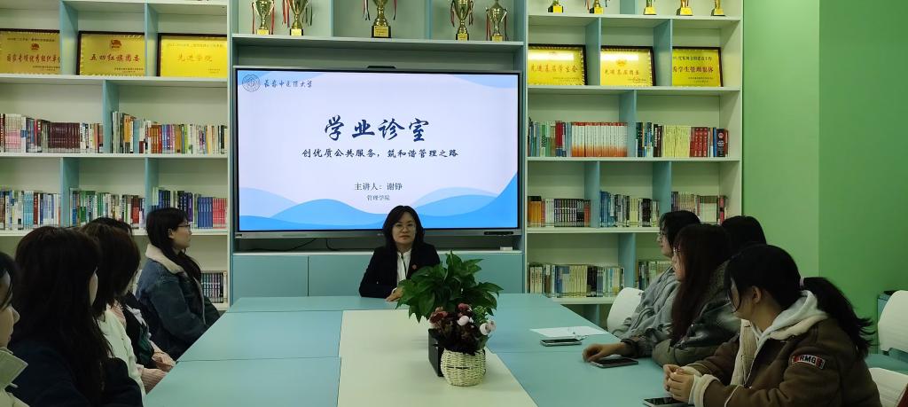 11月27日,管理学院在半夏社区开展“创优质公共服务,筑和谐管理之路”主题学业诊室。本次活动邀请到管理学院公共服务与管理教研室主任谢铮老师进行交流分享。