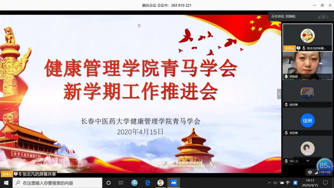 2020年4月15日,pp电子游戏平台官网青马学会召开了新学期工作推进会,青马学会指导教师刘海昭通过视频会议向全体青马学员传达新学期工作内容。会上刘海昭老师对新冠疫情下学院青马学会新学期的工作,进行了部署和适当调整。