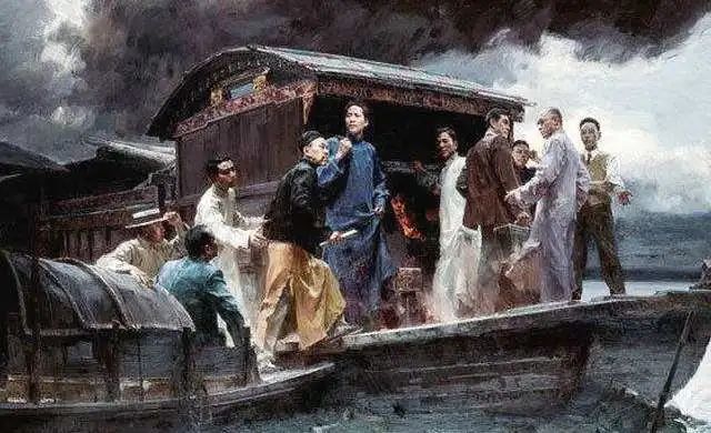 1921年7月23日,中共一大在上海秘密召开。因突遭法国巡捕搜查,会议被迫休会。7月底,中共一大代表毛泽东、董必武、陈潭秋、王尽美、邓恩铭、李达等,由李达夫人王会悟做向导,在游船中庄严宣告中国共产党的诞生。在船上,中共一大通过了党的第一个纲领和决议,正式宣告中国共产党庄严诞生。