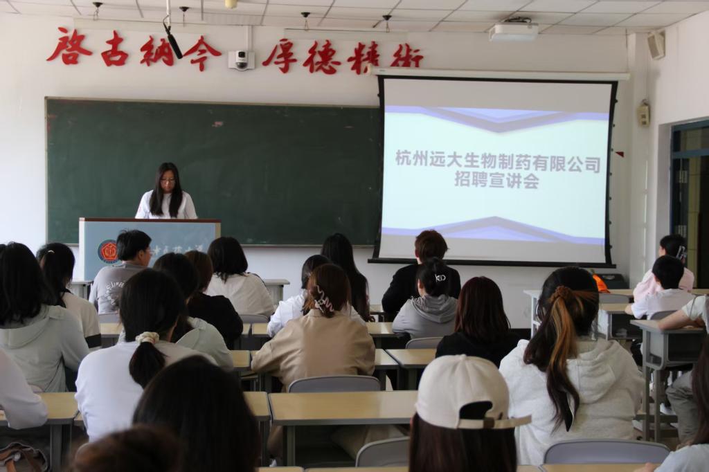 为拓宽毕业生就业渠道,加强校企合作交流。2025年4月11日,杭州远大生物制药有限公司管理学院在行知楼2301教室开展招聘宣讲会。此次宣讲会吸引了众多管理学院毕业生参加,现场气氛热烈。